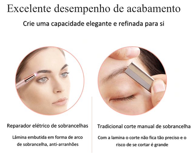 Sucesso de vendas no exterior. Com ele você pode contornar sua sobrancelha eliminando os pelos de forma TOTALMENTE INDOLOR. E sua ponta fina facilita o desenho, possibilitando qualquer mulher a fazer sozinha com o auxílio de um espelho.